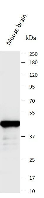 Western blot: Mouse brain stained with ARG44762 anti-beta Tubulin III antibody at 1 µg/mL dilution.