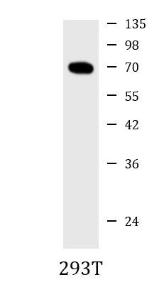 Western blot: 293T cell nucleus stained with ARG66706 anti-c-Fos phospho (Ser362) antibody at 1:2000 dilution.