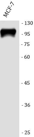 Western blot: MCF-7 stained with ARG43580 anti-delta 1 Catenin phospho (Thr916) antibody.