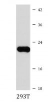 Western blot: 25 µg of 293T cell lysate stained with ARG42122 anti-eEF1E1 / AIMP3 antibody at 1:1000 dilution.