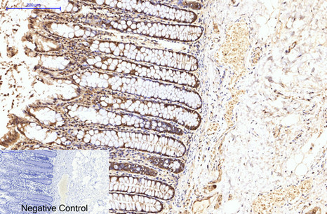 Immunohistochemistry: Paraffin-embedded Mouse colon tissue stained with ARG66176 anti-eIF4A1 antibody at 1:200 dilution (4°C, overnight). Antigen Retrieval: Boil tissue section in Sodium citrate buffer (pH 6.0) for 20 min.