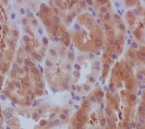 Immunohistochemistry: Paraffin-embedded Mouse kidney stained with ARG58636 anti-eIF4E eIF4E phospho (Ser209) antibody.