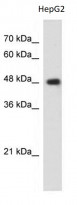 Western blot: HepG2 cell lysate stained with ARG58939 anti-hnRNP F antibody at 1.25 µg/ml dilution.