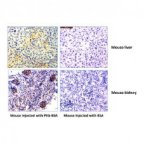 Immunohistochemistry: Paraffin-embedded Mouse liver and kidney stained with ARG57187 anti-methoxy PEG antibody [RM105] at 0.5 µg/ml. The Mouse was injected with PEG-BSA or BSA for 3 hours before sampling.