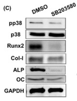 Western blot: MC3T3-E1 stained with ARG55258 anti-p38 MAPK antibody and ARG51850 anti-p38 MAPK phospho (Thr180 / Tyr182) antibody.