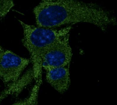 Immunocytochemistry: Hepa1-6 cells stained with ARG55736 anti-p53 antibody at 1:50 dilution. Cell were fixed with methanol.