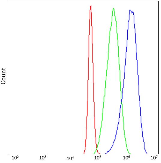 Flow Cytometry: A431 stained with ARG45466 anti-p95 / NBS1 antibody [5D7A1] at 1 µg/10^6 cells dilution.