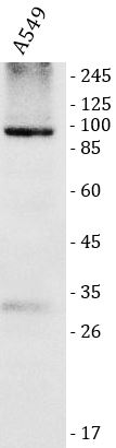 Western blot: A549 stained with ARG45466 anti-p95 / NBS1 antibody [5D7A1] at 0.5 μg/ml dilution.