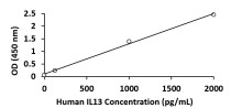 ARG83800 arigoPLEX® Human Allergy Multiplex ELISA Kit (IL4, IL5, IL13, IgE) results of a typical standard for Human IL13 run with optical density reading at 450 nm.