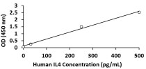 ARG83800 arigoPLEX® Human Allergy Multiplex ELISA Kit (IL4, IL5, IL13, IgE) results of a typical standard for Human IL4 run with optical density reading at 450 nm.