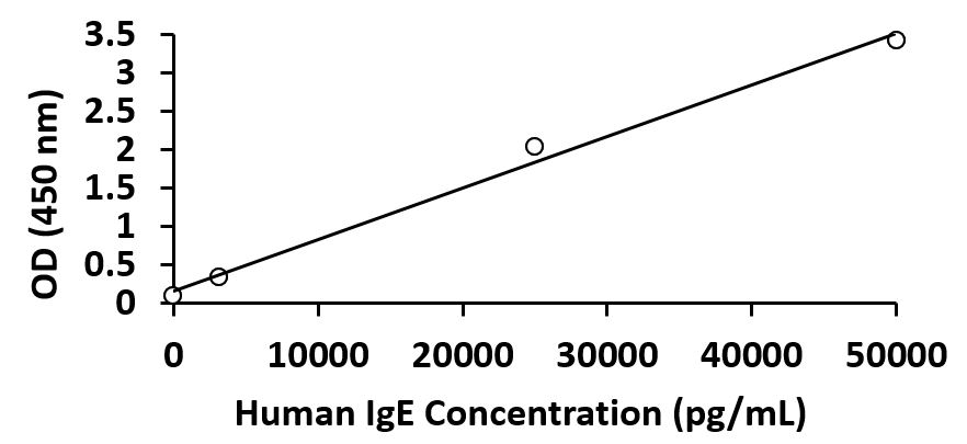 ARG83800 arigoPLEX® Human Allergy Multiplex ELISA Kit (IL4, IL5, IL13, IgE) results of a typical standard for Human IgE run with optical density reading at 450 nm.