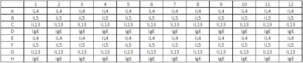 Antibodies Coating Pattern In Microtiter Plate of ARG83800 arigoPLEX® Human Allergy Multiplex ELISA Kit (IL4, IL5, IL13, IgE)