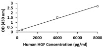 ARG83510 arigoPLEX®Human Angiogenic Marker Multiplex ELISA kit results of a typical standard for Human HGF run with optical density reading at 450 nm.
