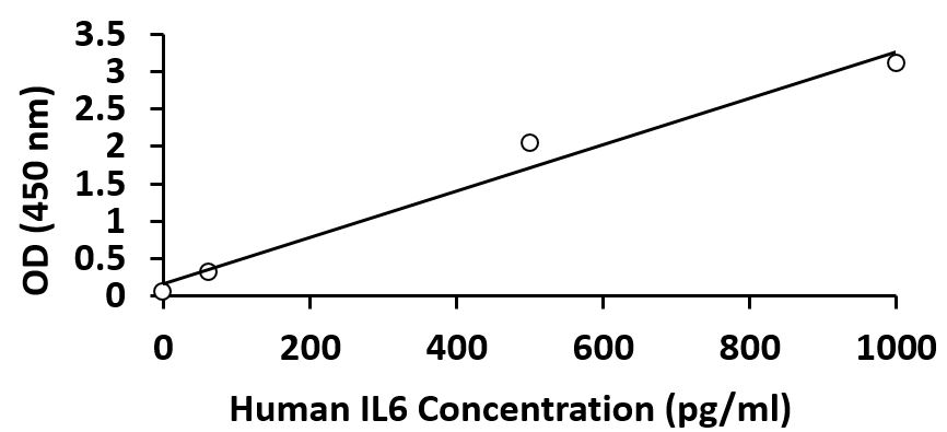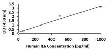 ARG83510 arigoPLEX®Human Angiogenic Marker Multiplex ELISA kit results of a typical standard for Human IL6 run with optical density reading at 450 nm.