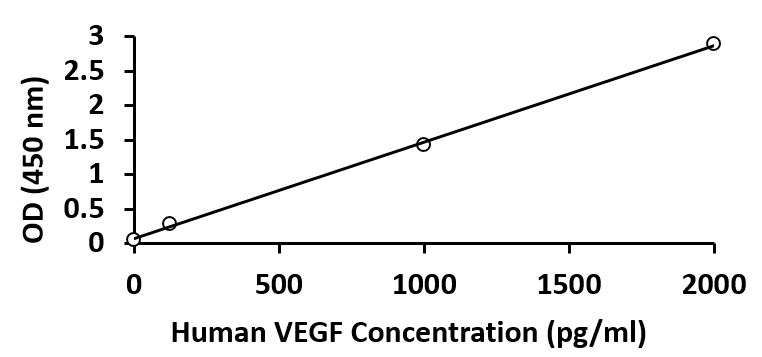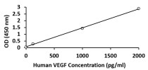 ARG83510 arigoPLEX®Human Angiogenic Marker Multiplex ELISA kit results of a typical standard for Human VEGF run with optical density reading at 450 nm.