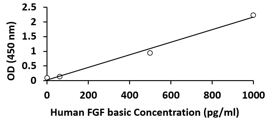 ARG83510 arigoPLEX®Human Angiogenic Marker Multiplex ELISA kit results of a typical standard for Human FGF basic run with optical density reading at 450 nm.