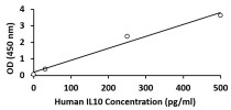 ARG83335 arigoPLEX® Human M1/M2 Cytokines Multiplex ELISA Kit (IL4, IL6, IL10, TNF alpha) results of a typical standard for Human IL10 run with optical density reading at 450 nm.
