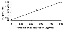 ARG83335 arigoPLEX® Human M1/M2 Cytokines Multiplex ELISA Kit (IL4, IL6, IL10, TNF alpha) results of a typical standard for Human IL4 run with optical density reading at 450 nm.