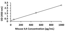 ARG83814 arigoPLEX® Mouse Allergy Multiplex ELISA Kit (IL4, IL5, IL13, IgE) results of a typical standard for Mouse IL4 run with optical density reading at 450 nm.