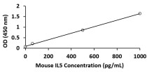 ARG83814 arigoPLEX® Mouse Allergy Multiplex ELISA Kit (IL4, IL5, IL13, IgE) results of a typical standard for Mouse IL5 run with optical density reading at 450 nm.