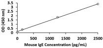 ARG83814 arigoPLEX® Mouse Allergy Multiplex ELISA Kit (IL4, IL5, IL13, IgE) results of a typical standard for Mouse IgE run with optical density reading at 450 nm.