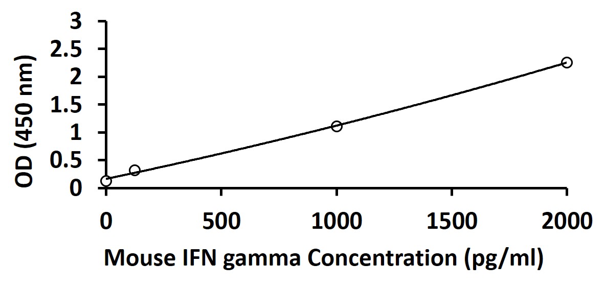 ARG82842 arigoPLEX® Mouse Proinflammatory Cytokine Multiplex ELISA Kit (IFN gamma, IL1 beta, IL6, TNF alpha) results of a typical standard for Mouse IFN gamma run with optical density reading at 450 nm.
