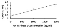 ARG83356 arigoPLEX® Rat Fibrotic Marker Multiplex ELISA Kit (TGF beta1, PDGF BB, IL6, TNF alpha) results of a typical standard for Rat TGF beta 1 run with optical density reading at 450 nm.