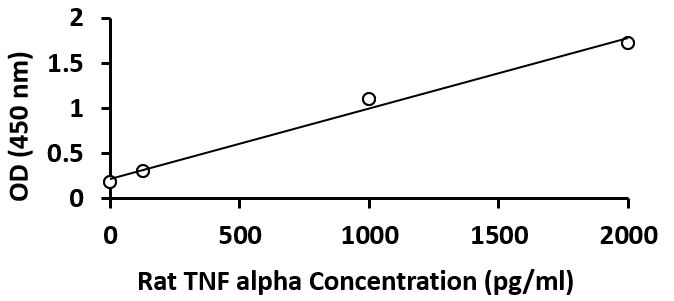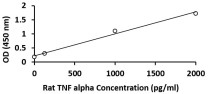 ARG83356 arigoPLEX® Rat Fibrotic Marker Multiplex ELISA Kit (TGF beta1, PDGF BB, IL6, TNF alpha) results of a typical standard for Rat TNF alpha run with optical density reading at 450 nm.