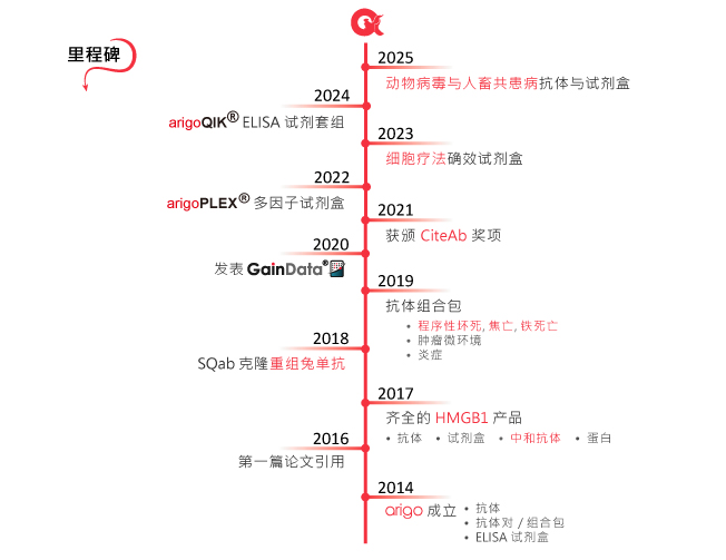 arigo Biolaboratories Corp. 是一家以 arigo 品牌驱动创新的生物科技公司,专注于开发高品质抗体、抗体组合及多因子ELISA试剂盒等产品。