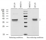 - Specificity: The clone DC-10 reacts with Cytokeratin 18 (45 kDa). Cytokeratins are a member of intermediate filaments subfamily represented in epithelial tissues.