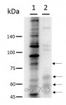 - Specificity: This antibody reacts with the unconjugated Thr181 phosphorylated Tau peptide. Cross-reactivity with un-phosphorylated peptide (APKTPPSSGEC) was observed.