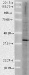 - Specificity: Detects ~38kDa. Can run up to 45kDa on SDS Page.