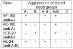 • Specificity: The clone HE-193 recognizes human blood group A (monofucosyl and difucosyl A antigens with chain types 1, 2, 3, 4, 5, 6) and Forssman antigen.