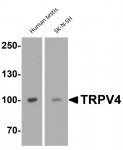 • Specificity: TRPV4 antibody is human specific. At least six isoforms of TRPV4 are known to exist. This antibody is predicted to not cross-react with other TRP protein family members.