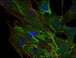 • Specificity: The clone EM-09 reacts with AHNAK1, a 700 kDa multi-functional adaptor protein expressed mainly in epithelial cell, various types of muscle cells and immune cells.